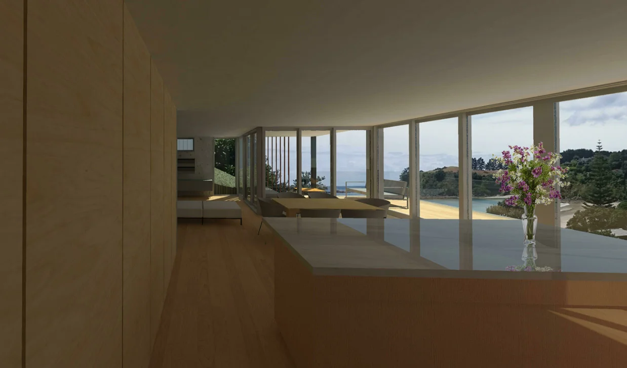 This design has evolved throughout many iterations, working around challenging site conditions as well as strict council requirements and covenants. Capturing the stunning views from it's privileged perch overlooking one of Waiheke's many scenic bays, this home provides its owners complete privacy without compromising access to the views and outdoor living spaces.